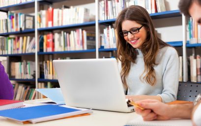 Some People and Students in front of the new and futuristic building of the University of Economics and Business in Vienna.
